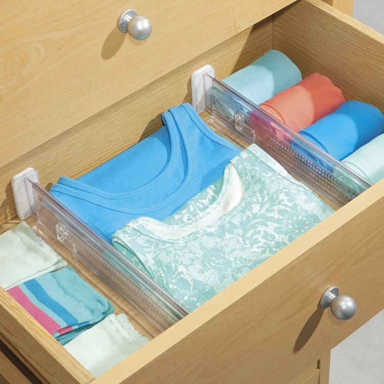 Two practical adjustable drawer dividers, that can be adapted to many different drawers. Fits drawers from 34.6 which can be pulled out to 52.7 cm. Helps keep order in the box or in the closet. Easily find your socks, sharps, kitchen utensils or panties. -