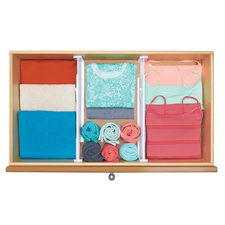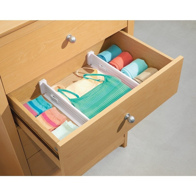 Two practical adjustable drawer dividers, that can be adapted to many different drawers. Fits drawers from 34.6 which can be pulled out to 52.7 cm. Helps keep order in the box or in the closet. Easily find your socks, sharps, kitchen utensils or panties. -
