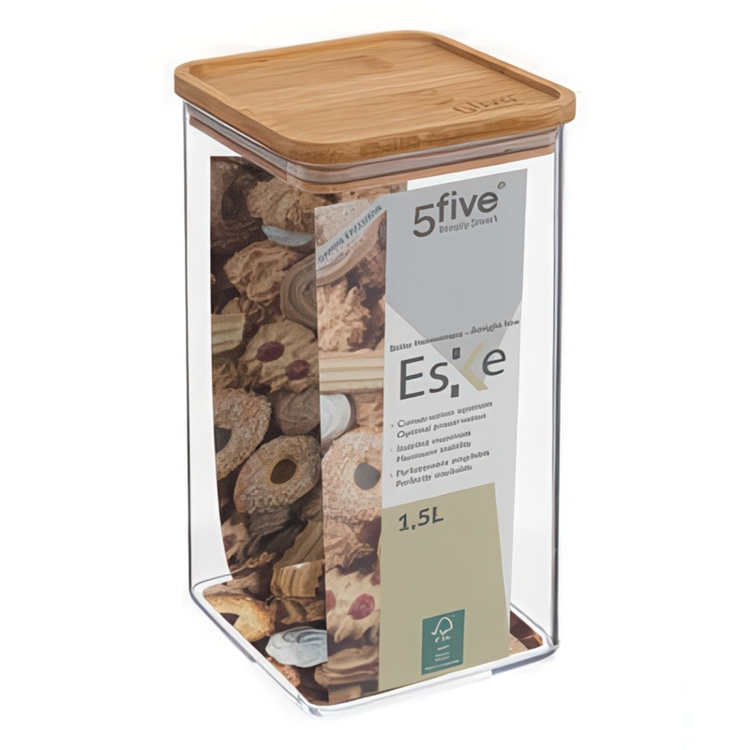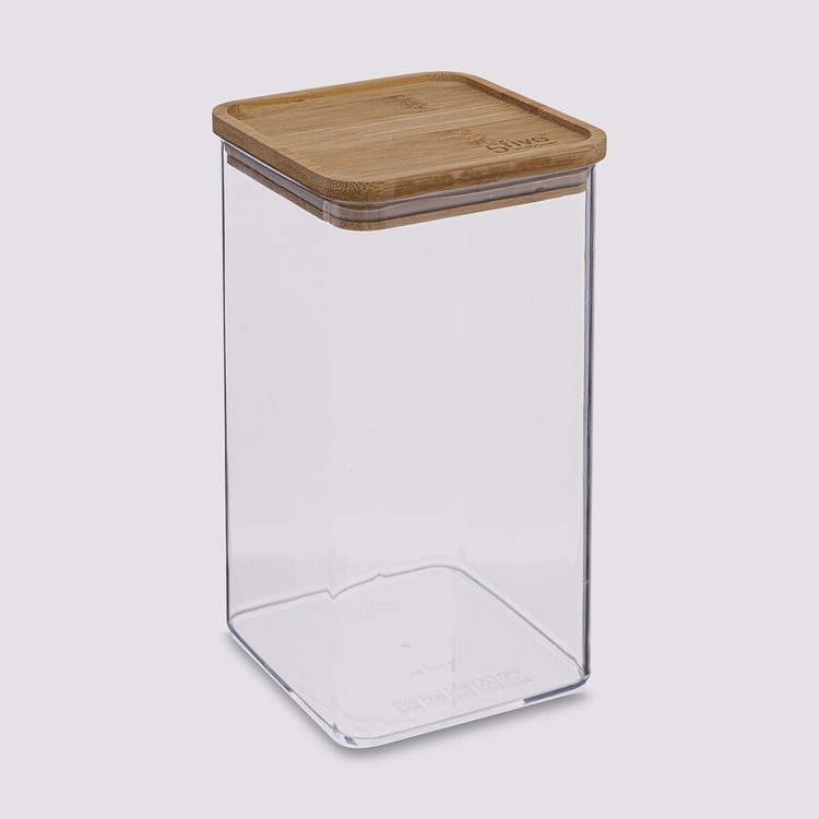 Airtight container, Square, 1,5 L, ESKE BAMBOO LARGE 10,4 x 10,4 x H 20,5 cm, Clear / Nature