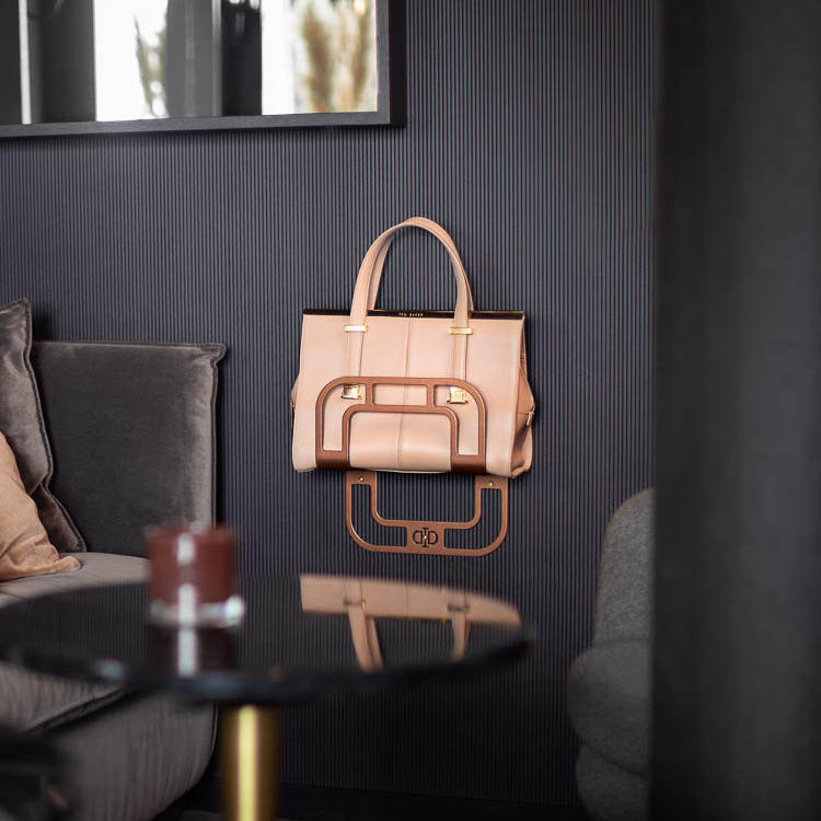 The bag holder from Dinie Design is more than just a practical storage solution – it is a tribute to the shape and function of the bag. With its sleek design in powder-coated aluminum, it showcases the bag as a natural part of the room's decor. Measuring 25 x 15 x 30 cm, it is perfect for bags over 25 cm in length and a maximum width of 15 cm.