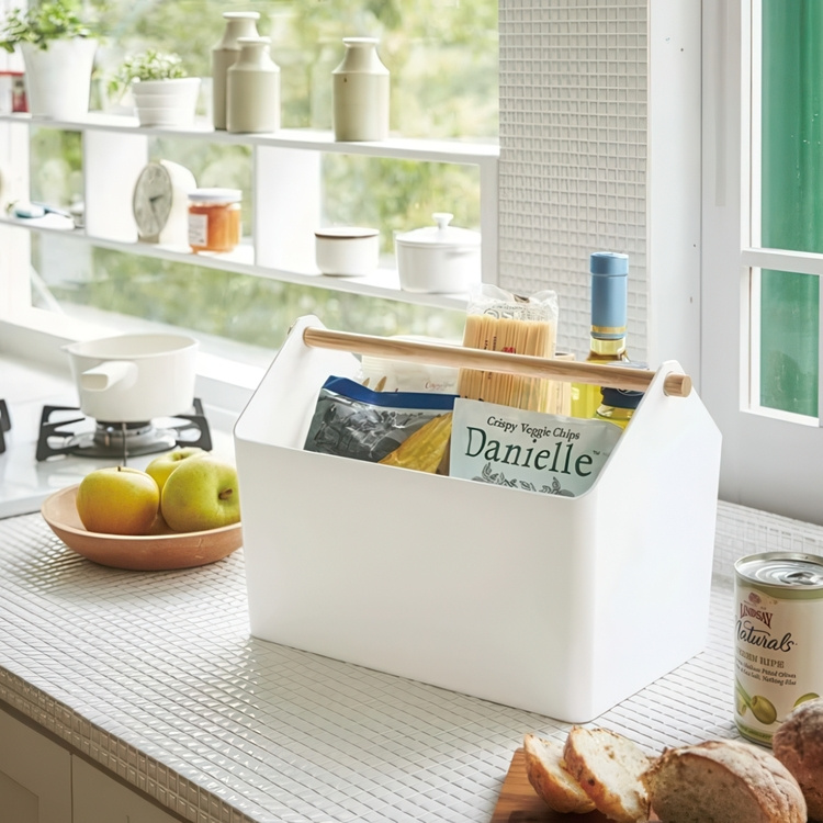 Basket with wooden handle, FAVORI, 37 x 21 x H 24 cm, Yamazaki, White