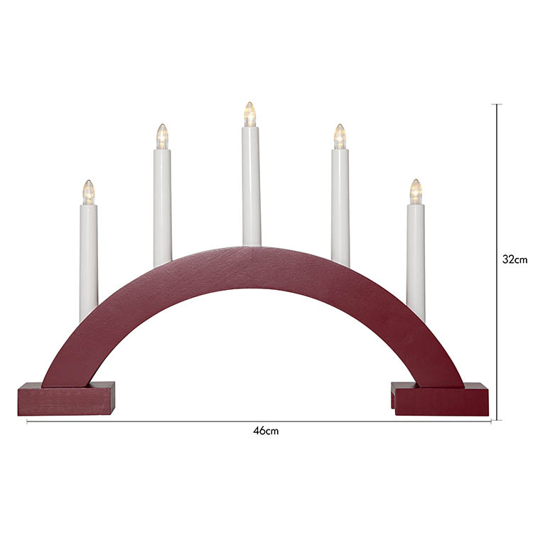 Arch-shaped advent candle holder in wood with classic design. The five LED lights emit a warm white glow that creates a soft and atmospheric light. The candle holder is battery-operated, making it perfect for windows, shelves, or table settings or other places where power outlets are absent. Made from FSC®-certified wood from sustainable forestry.