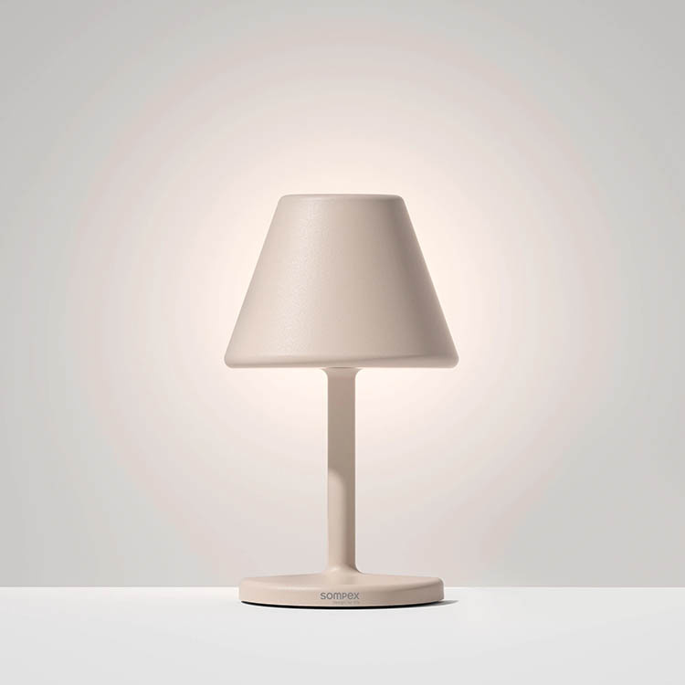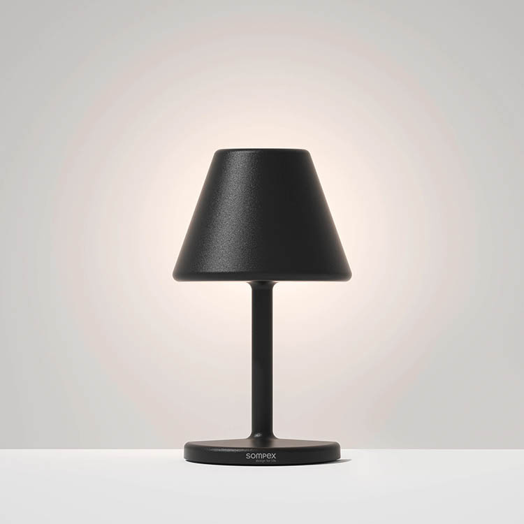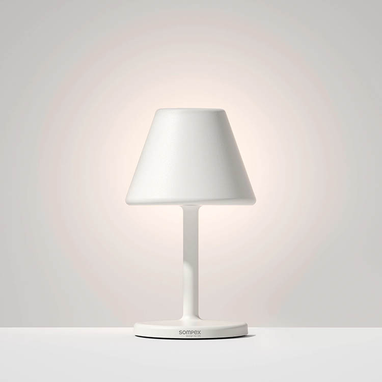 The Sompex bedside table lamp is a stylish and practical table lamp that combines smart design with flexible function. Thanks to its semi-circular shape, it takes up minimal space and fits perfectly on narrow surfaces such as bedside tables and window sills. With a stepless touch dimmer and up to 10 hours of battery operation, the lamp provides a soft and adjustable light in the desired intensity.