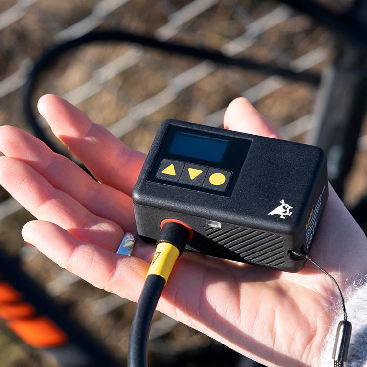 The pump can handle up to 120 PSI (8.3 BAR) and has an airflow of 14 liters per minute. This means you can quickly and effortlessly inflate a bike tire—perfect when the tires need a little extra pressure before you set off.Automatic pressure setting