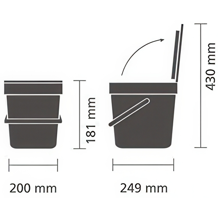 Bin for organic waste, BRABANTIA SORT & GO WASTE BIN, 6 L, Dark Grey