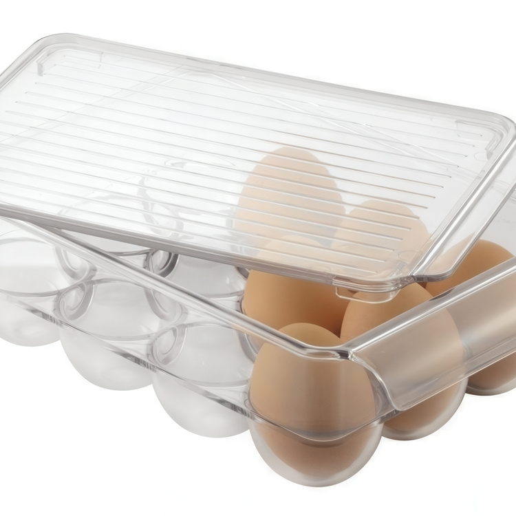 Bin with lid for 12 Eggs, PULLZ SMALL EGG BIN, 22 x 16 x H 8 cm, Transparent