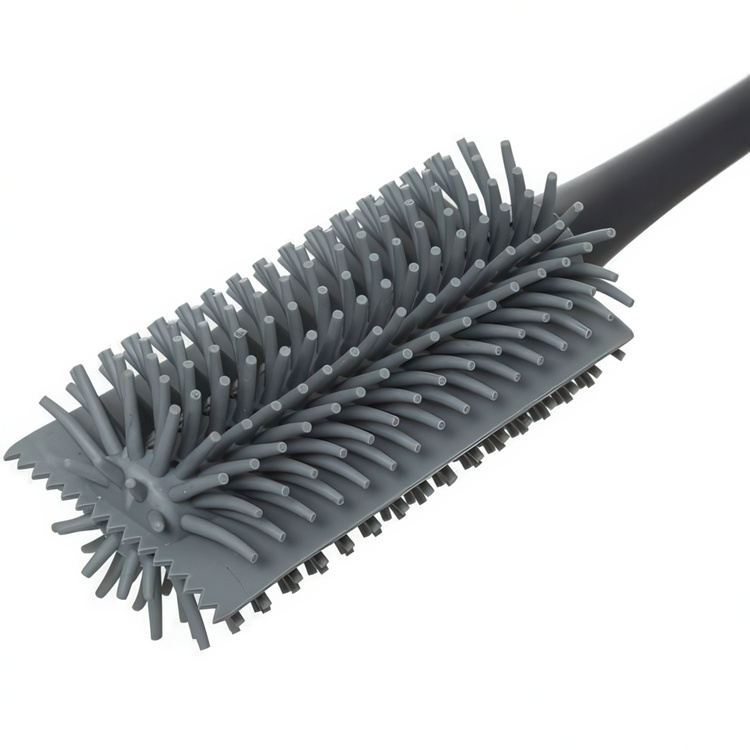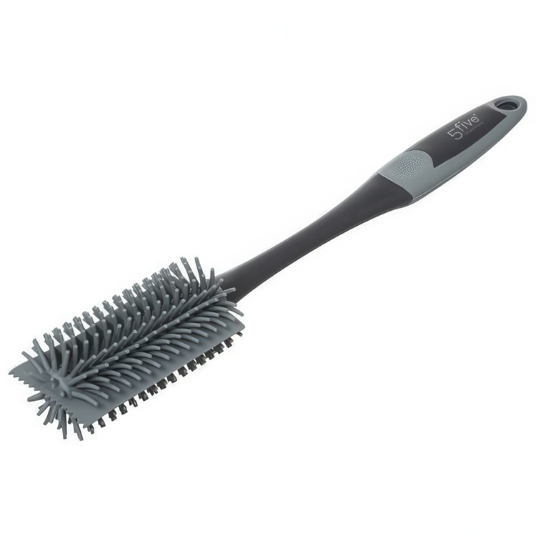 At the bottom, the brush has a toothed rubber scraper that can be used to scrape off stuck-on food particles. -