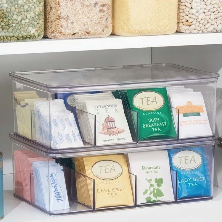 Box Tea Bags, 8 Compartments, ID CABINET BIN, 27,3 x 18,4 x H9,5cm, Transparent