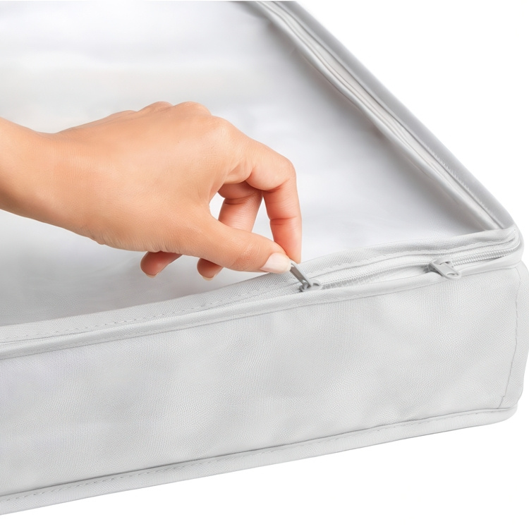 Protects against dust and dirt and gives a neat and orderly impression. When not use, it is folded together and takes little space. Fits under most beds. Smart when you need extra space! -