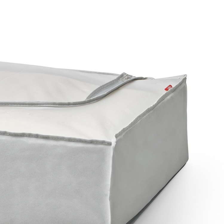 Smart under-bed storage for clothes, blankets and duvets that protect from dirt and dust and keep everything clean from the Spanish Ray. Protects against dust and vermin and gives a neat and orderly impression. When not in use, it can fold together and little space. Fits under most beds. Smart when you need extra space! With zipper and place for label. -