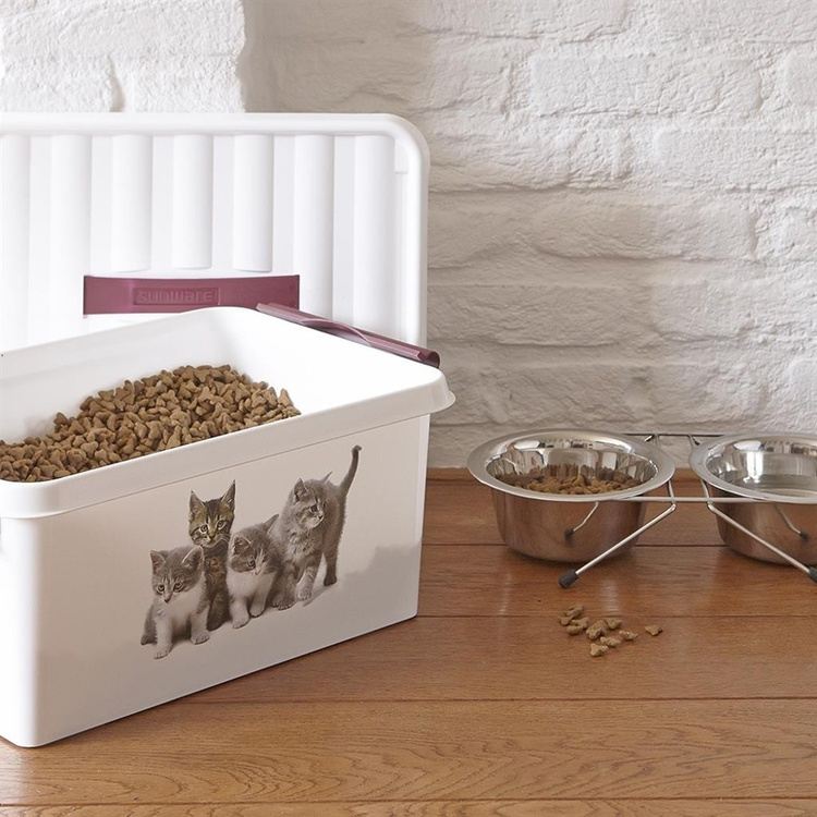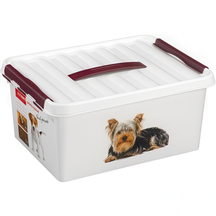 Box with handle, 15 L, PET STORAGE BOX MEDIUM, 40 x 30 x H 18 cm, White / Bordaux