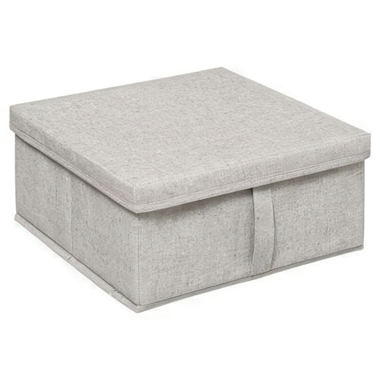 Practical box in strong polyester fabric with sturdy walls and handles.