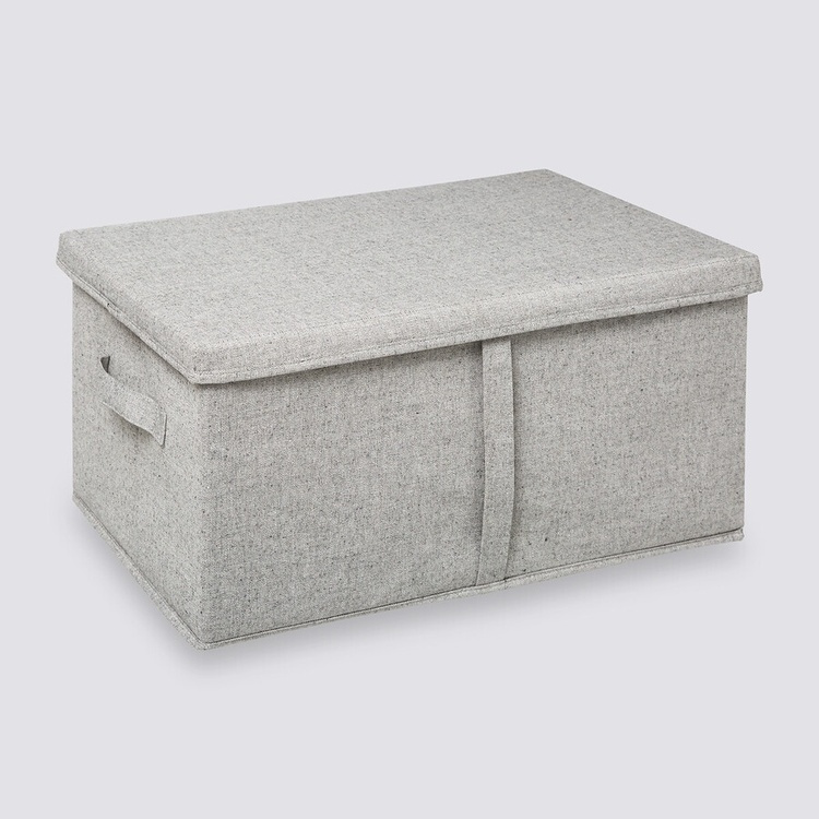 Practical box in strong polyester fabric with sturdy walls and handles.