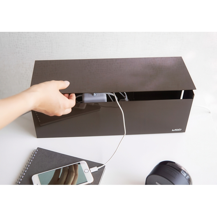 Cable organizer, WEB CABLE BOX, 40 x 15,5 x H 14,5 cm, Yamazaki, Dark Brown