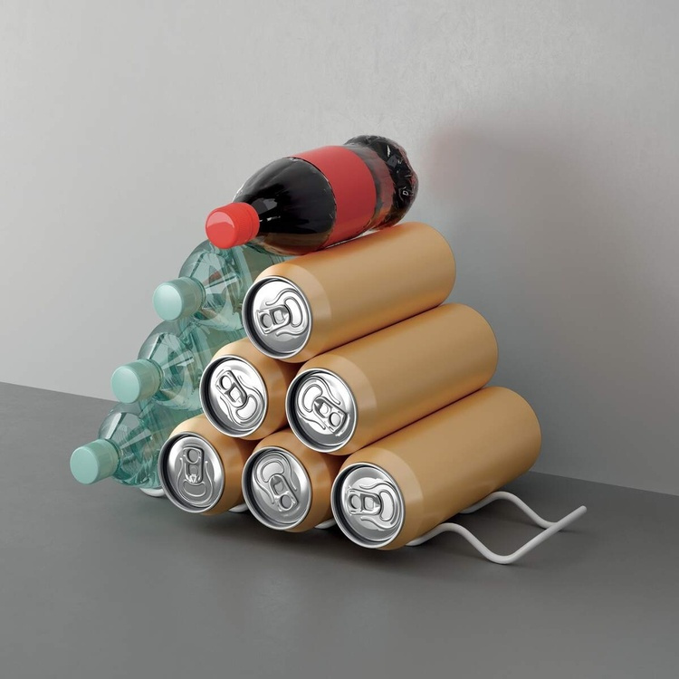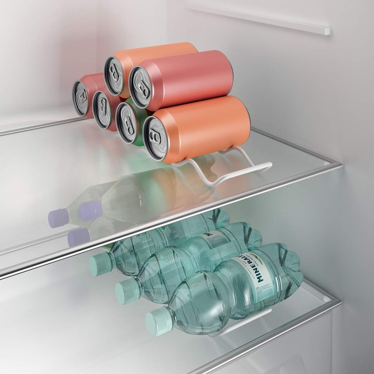 By stacking cans and bottles, you can store up to 15 pieces in the rack.
