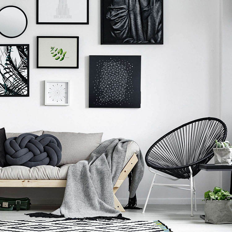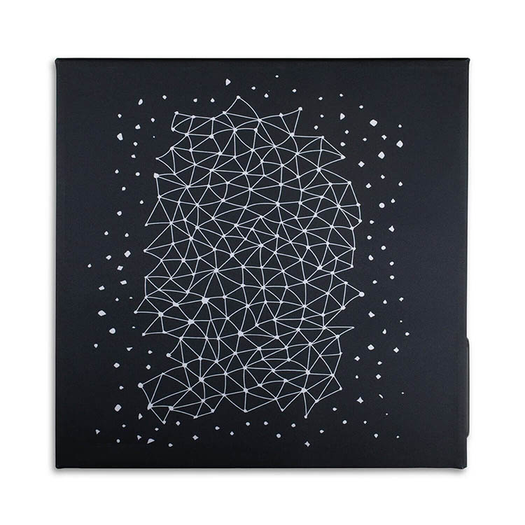 The sound frame is designed as a decorative picture measuring 40 × 40 cm with a graphic black-and-white design. Behind the image hides a built-in speaker that delivers clear and pleasant sound. The discreet construction allows the technology to blend into the design, making the frame appear as a regular picture on the wall. At the same time, it fills the room with music and becomes a natural part of the decor.Wireless music with Bluetooth