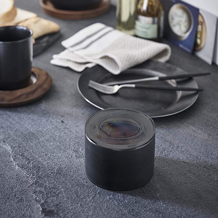 Ceramic Canister with lid, YAMAZAKI TOWER SMALL CANISTER, Ø 10,5 x H 7 cm, Black / Transparent