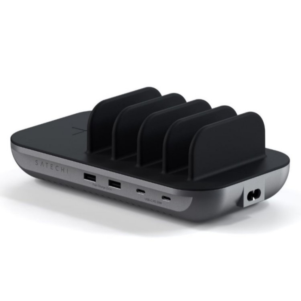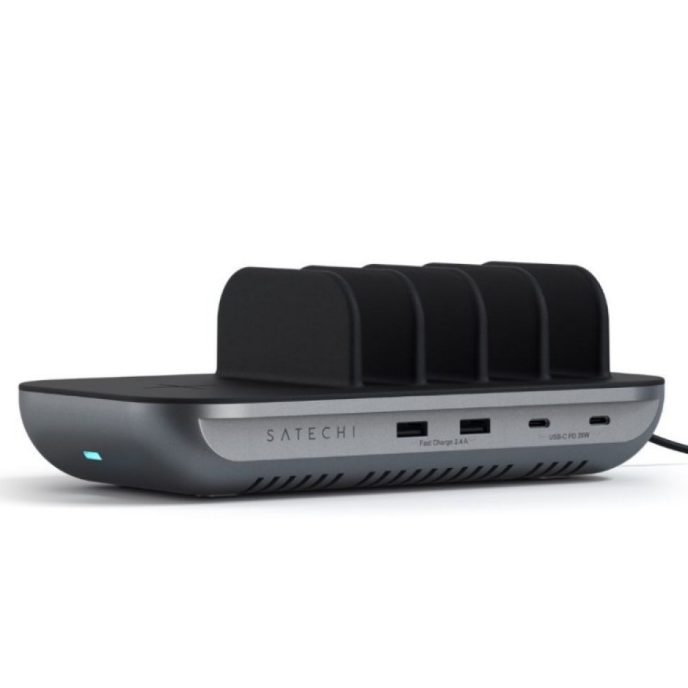 The charging station is practical to use when you have lots of devices to charge. It creates an organised area to charge your devices on and you can lean phones and tablets against the soft silicone panel. Connect the device's cable to the charging station and you only need a wall socket to charge everything.