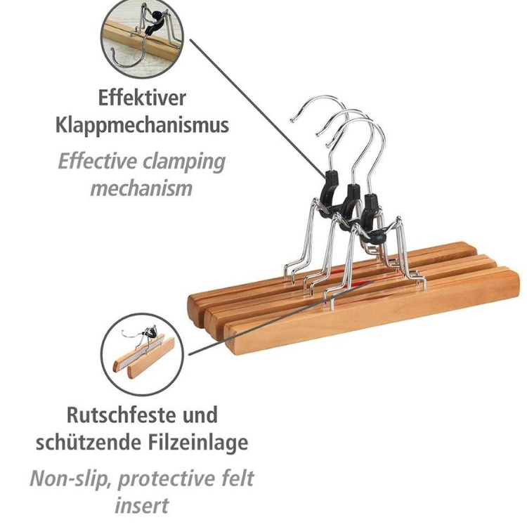 Clamping Hangers, wood, Set of 3, PREMIUM, Nature