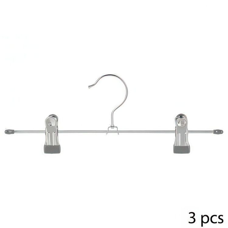 Classic Hanger for skirts, 3 hangers, Metal, CINTRES CLIP HANGERS, 30 cm, Silver / light grey