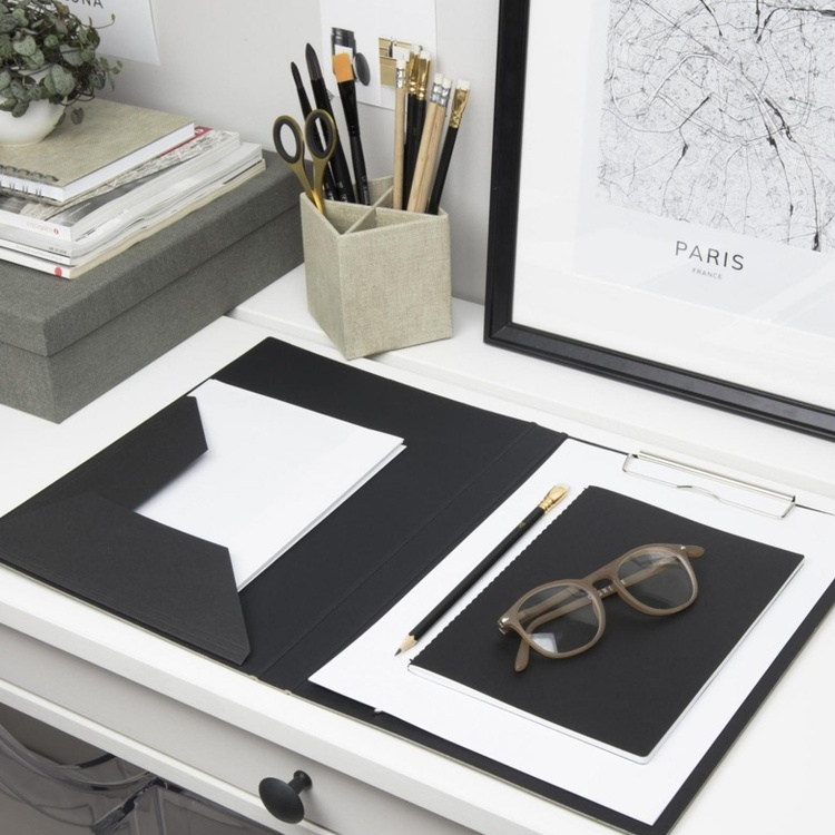 A clipboard is good to have. Keep track of your loose papers while you can take notes. And sure, it's nice with a stylish folder to hide your work! -