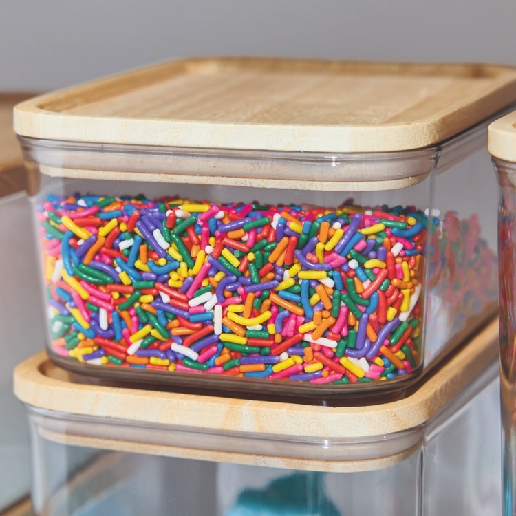 Thanks to the airtight seal between the cylinder and the lid the contents of each kitchen storage container stay fresh and dry. -