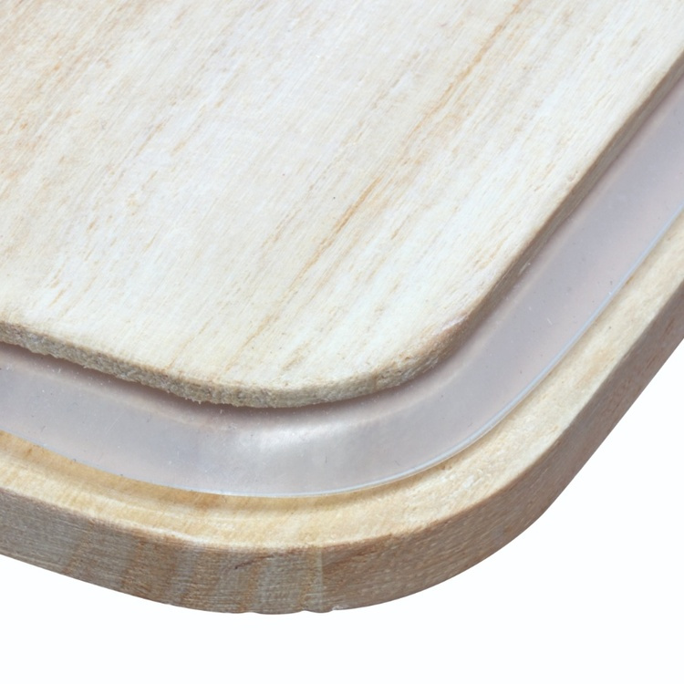 Transparent storage container with a lid made of Paulownia-wood.
