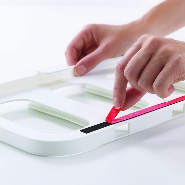 Easy installation! Hang the rail on the shelf edge and fasten it to the back with the supplied self-adhesive tape. The shelf edge may not exceed 2 cm.