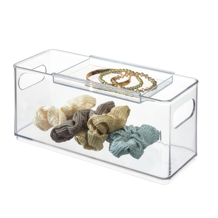 Container with sliding lid, THE HOME EDIT HAIR ACCESSORY BIN, Transparent