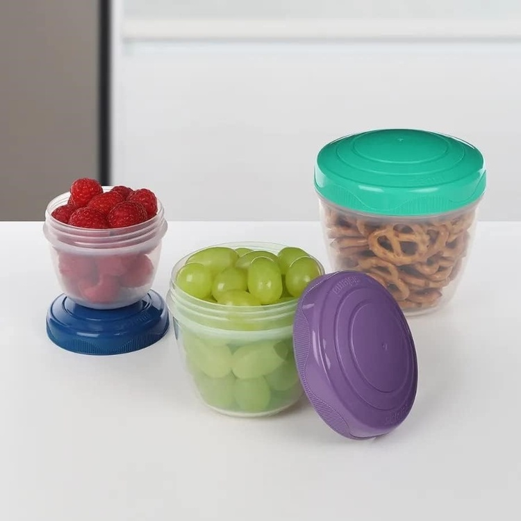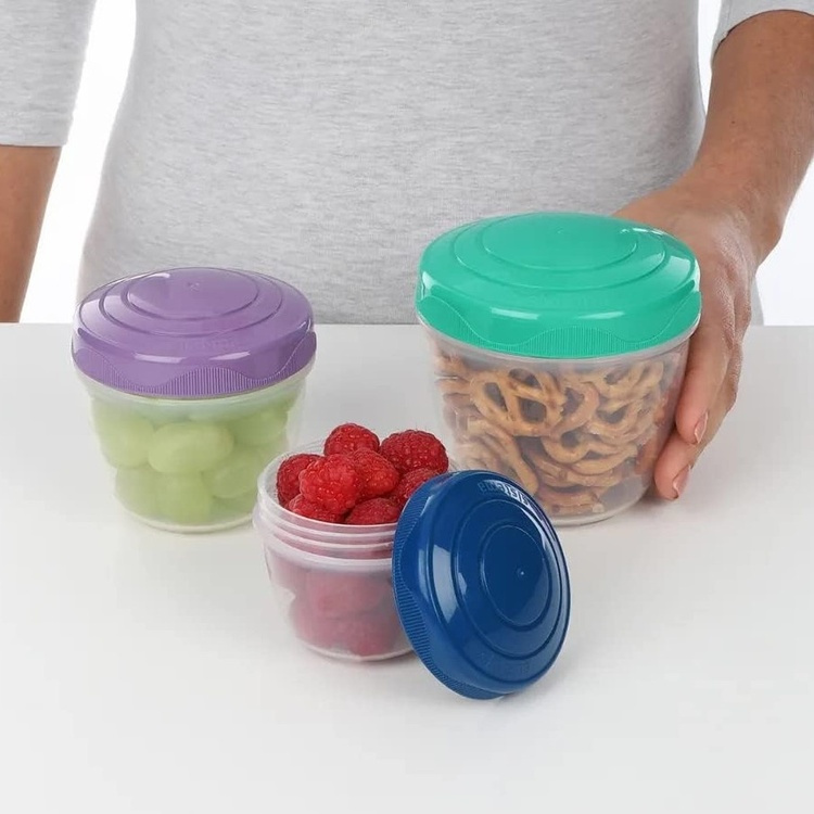 Containers for snack, Set of 3, SISTEMA SNACK AND NEST, Purple / Mint / Blue