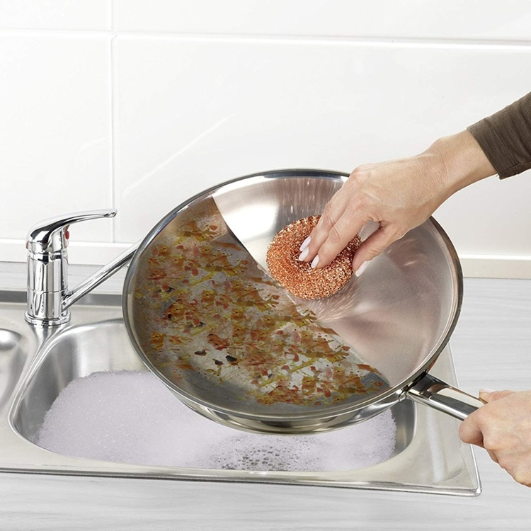 Three copper pads that cleans particularly thoroughly and is gentle to the surface.