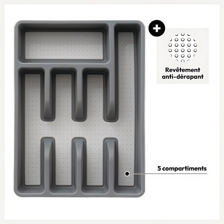Cutlery tray, 5 compartments, NON SLIP RANGE-COUVERTS, 36,5 x 26.5 x H 5 cm, Grey