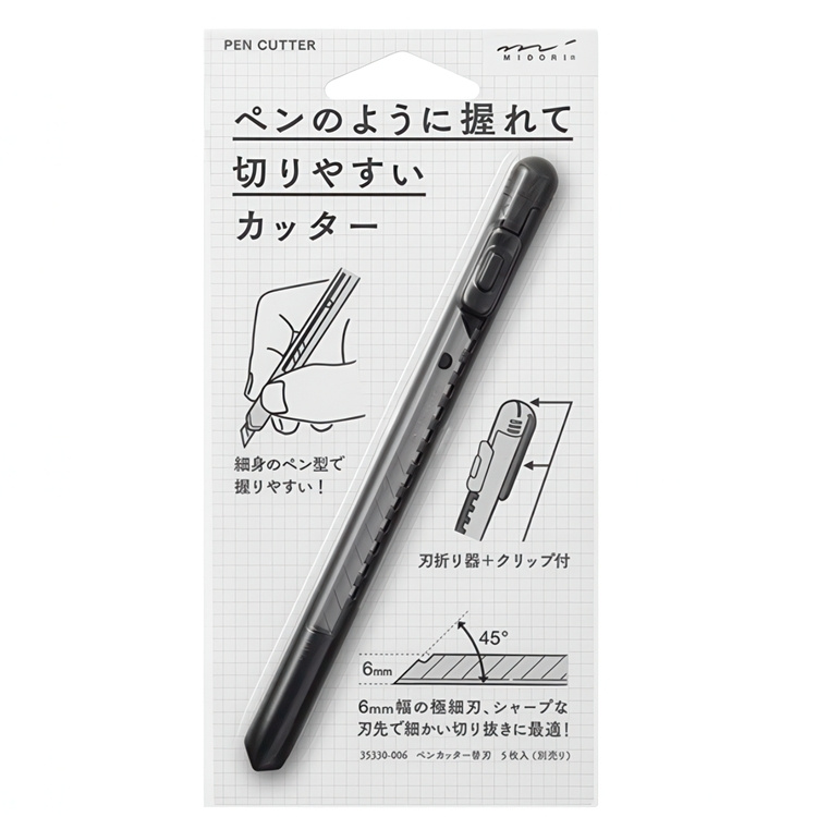 Cutter, MIDORI PEN CUTTER, ∅1 cm × 14 cm, black
