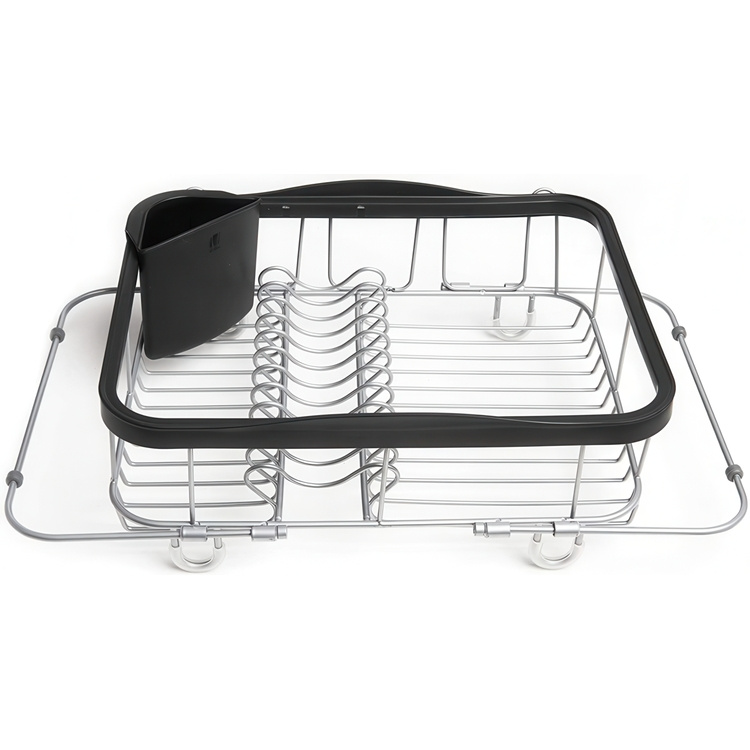 This dish drainer has extendable rails that allow you to hang it over the sink.