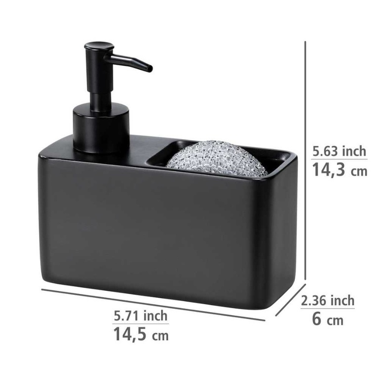 Dish-washing liquid pump with storage, RESA, 14,5 x 6 x H 14,3 cm, Black