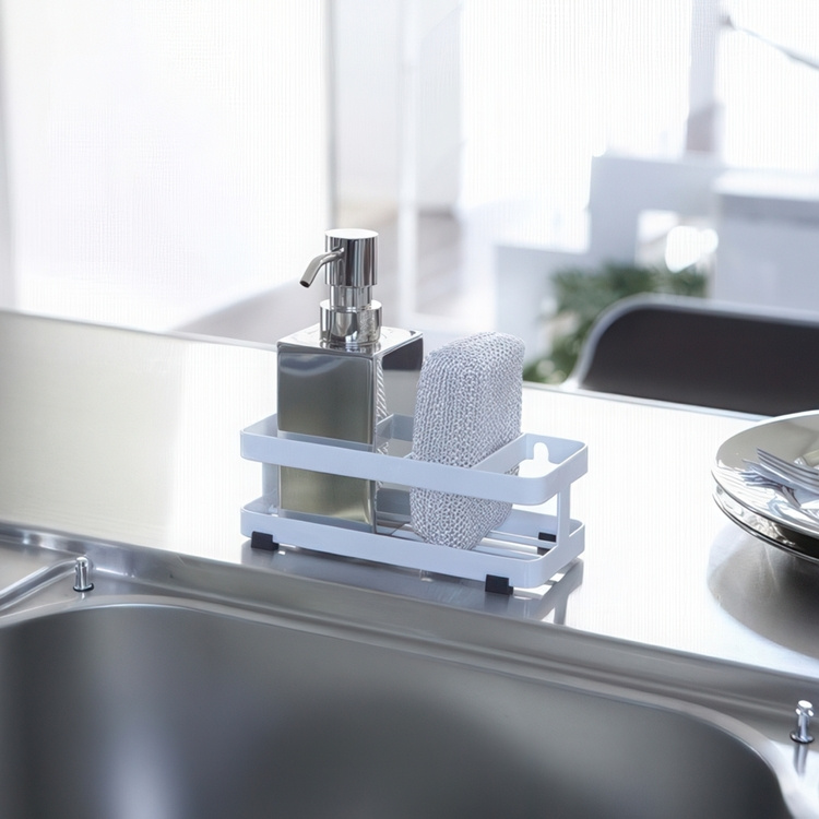 Holder for dishwashing liquid and sponges from Japanese Yamazaki.