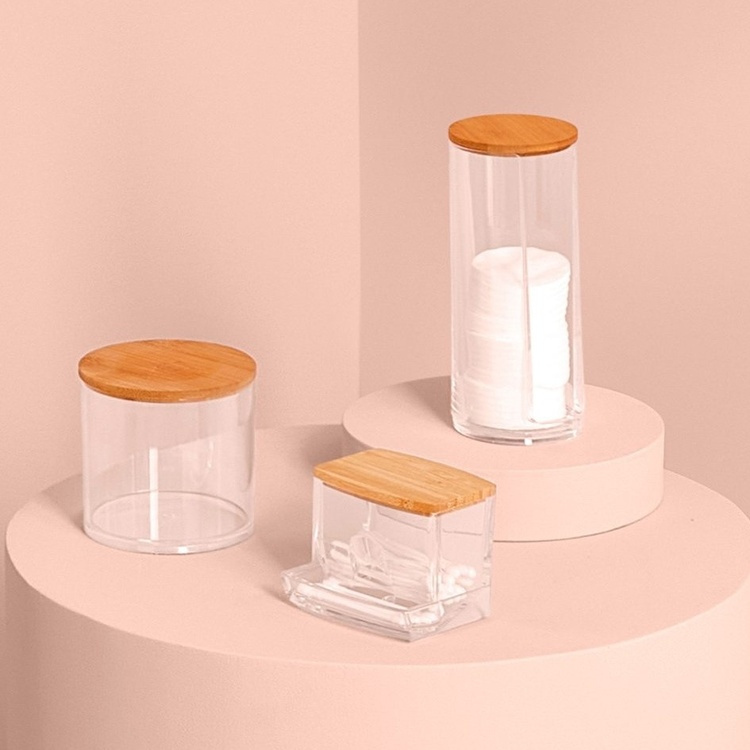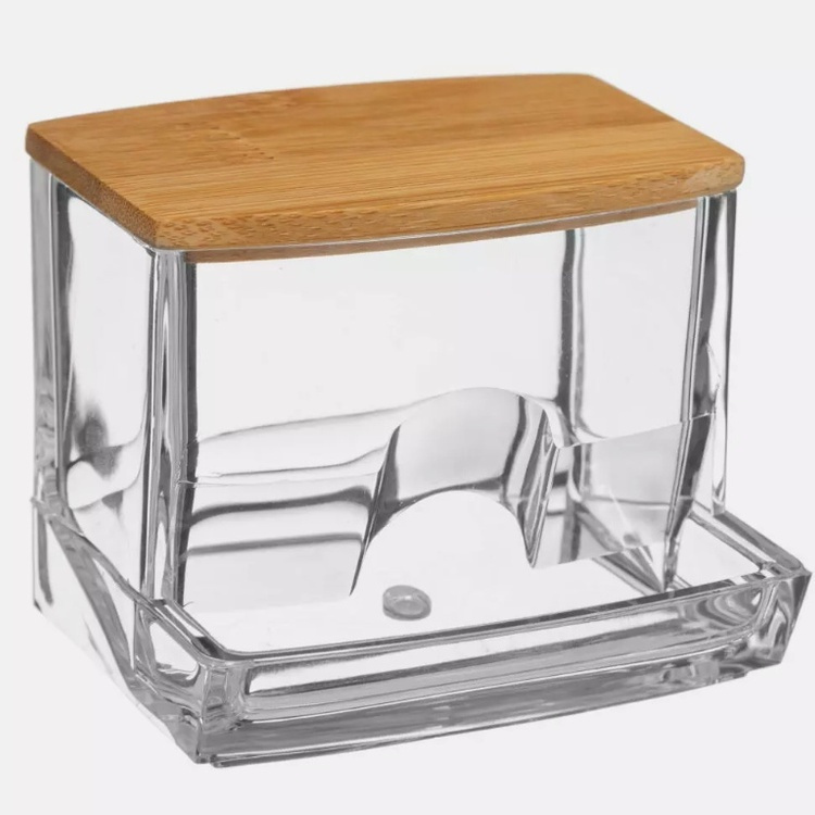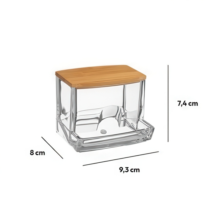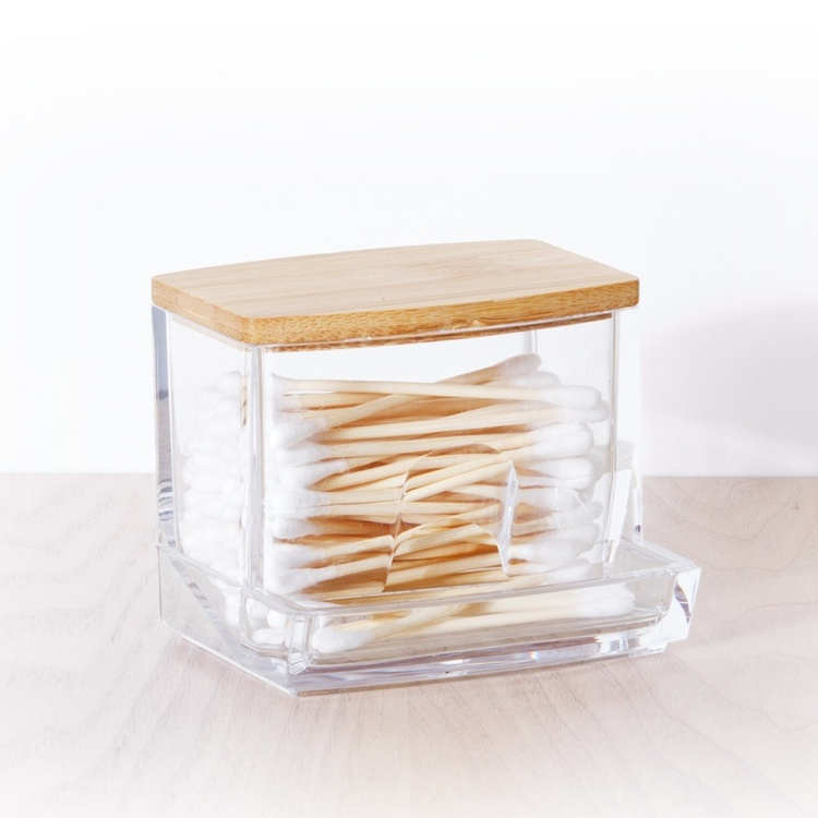 Dispenser for Cotton Buds, SELENA BAMBOO Q-TIP DISTRIBUTOR, 9,3 x 8 x H 7,4 cm, Clear / Nature