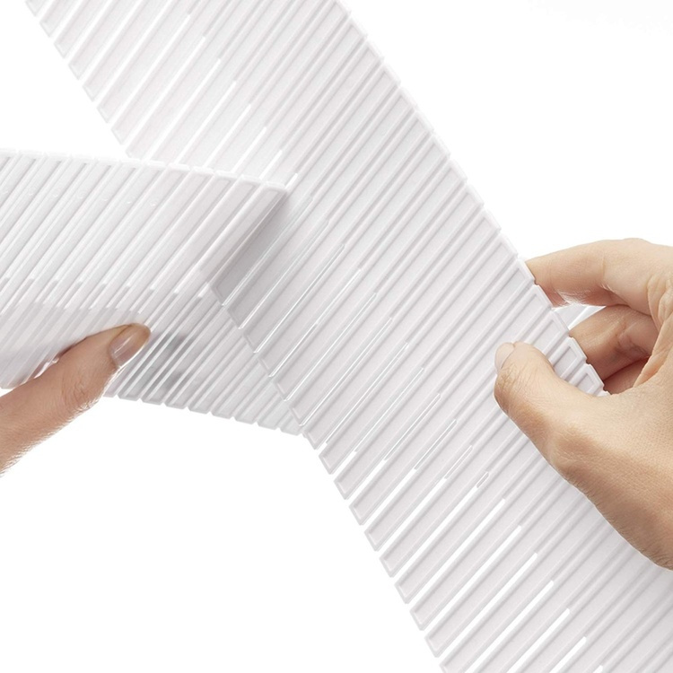 Customizable practical drawer divider that can fit many different drawers. Cut the sections into different lengths to create the right dimensions and size of the divisions. Helps keep order in the drawer or in the closet. Find your socks, sashes or panties Easily. Enables many combinations to organize in the drawers.