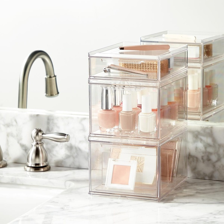 Designed to be stacked with other drawers in The Home Edit series for makeup.