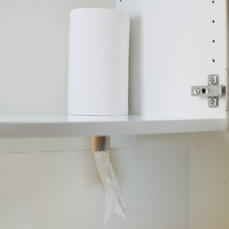 This easy-tear cabinet paper towel holder is a practical holder for your kitchen paper towel that allows you to hide your rolls inside your cupboard! The paper is pulled out through the pipe and can be torn using the jagged edges!