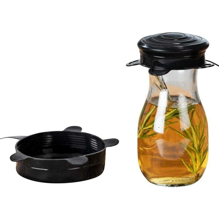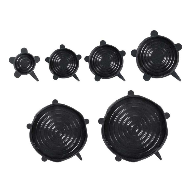 Expandable, airtight lids, Set of 6, SILICONE STRETCH TOPS, Black