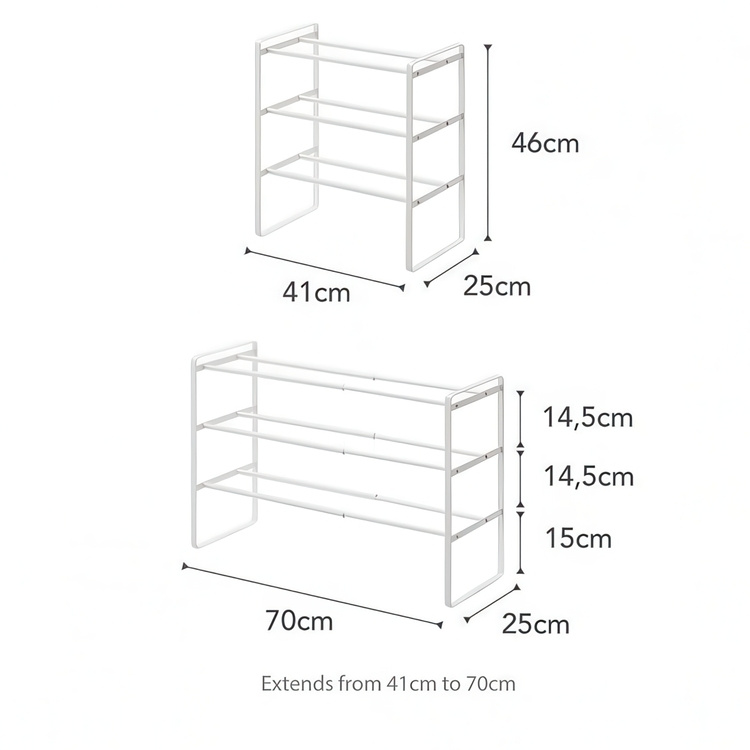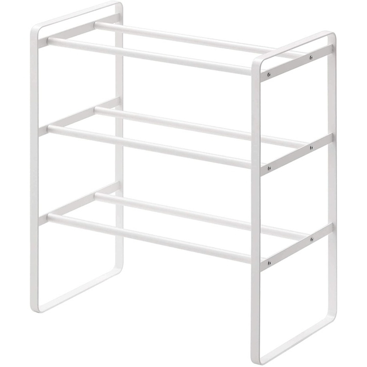 Expandable Shoe Rack in Metal, Stackable, FRAME 3-TIERED, Yamazaki, White