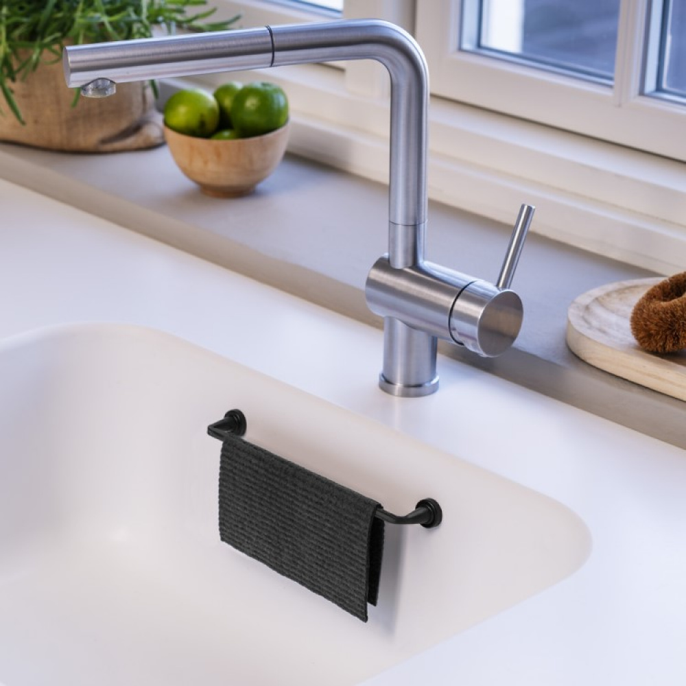 Extra strong magnets mean you can also attach your dishcloth holder to sinks made of composite material. The magnets allow you to use your dishcloth holder in sinks made of granite, Corian, Silgranite and similar mixed materials. In addition, the extra strong magnets also work on steel sinks.
