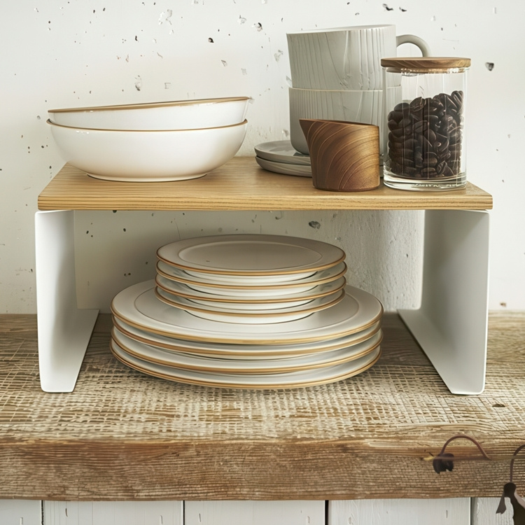 Use this stackable kitchen rack to create more space for jars, spices or other kitchen items. I