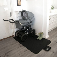 When you bring the stroller indoors during winter—covered in snow, gravel, or rainwater—simply place it on the floor protector. The protector is designed to slowly absorb the moisture so that the floor remains dry. The fibers gradually absorb the liquid, preventing dirt and moisture from seeping through. The moisture then evaporates naturally over time, making it perfect for hallways or entryways.Lightweight and foldable