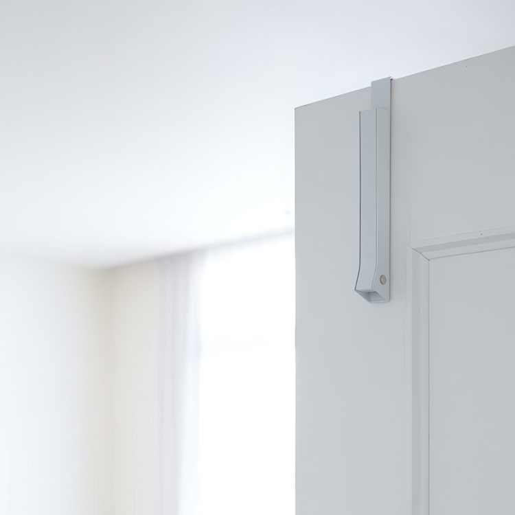 Can be screwed up or hung over the door.