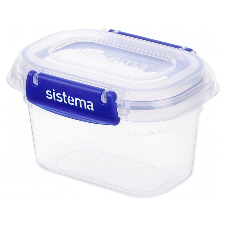 Food box, 400ml, KLIP IT PLUS RECTANGLE, 13 x 9 x H 8 cm, Transparent / Blue