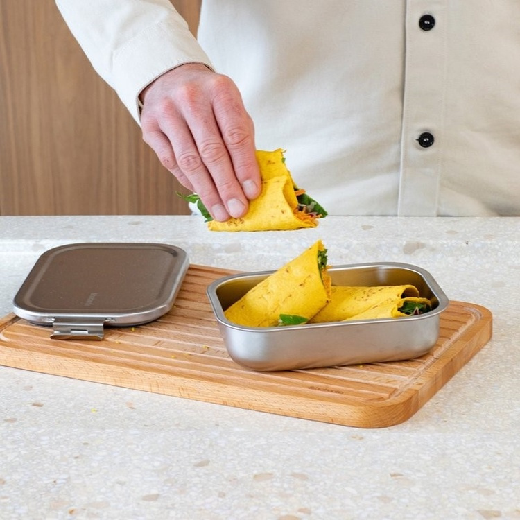 Food box in Steel, 1,1 L, BRABANTIA MAKE & TAKE MEDIUM LUNCH BOX, 14,4 x 20,6 x H 5,8 cm, Silver