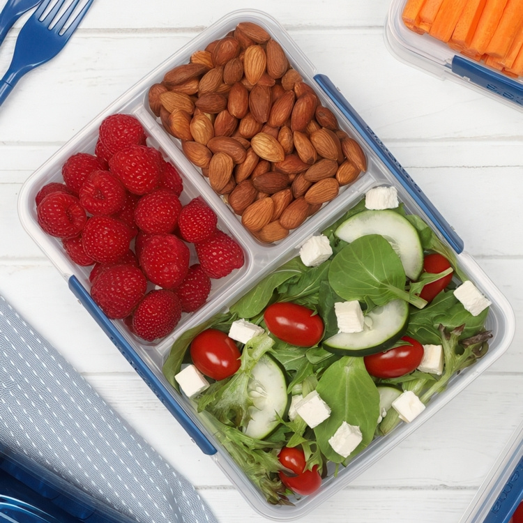 Practical three compartment lunch box.