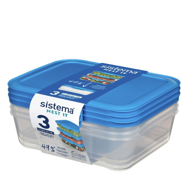 Food Storage boxes, 1,5 L, Set of 3, SISTEMA NEST IT, Clear / Blue